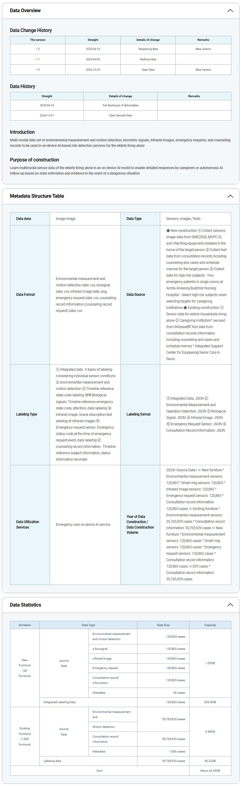 Risk Detection Data for Elderly Living Alone