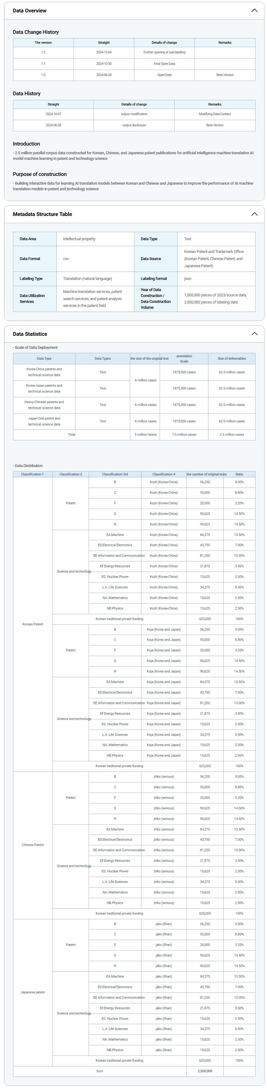 Korean-Chinese Korean-Japanese Patent and Technology Science Field Parallel Corpus Data