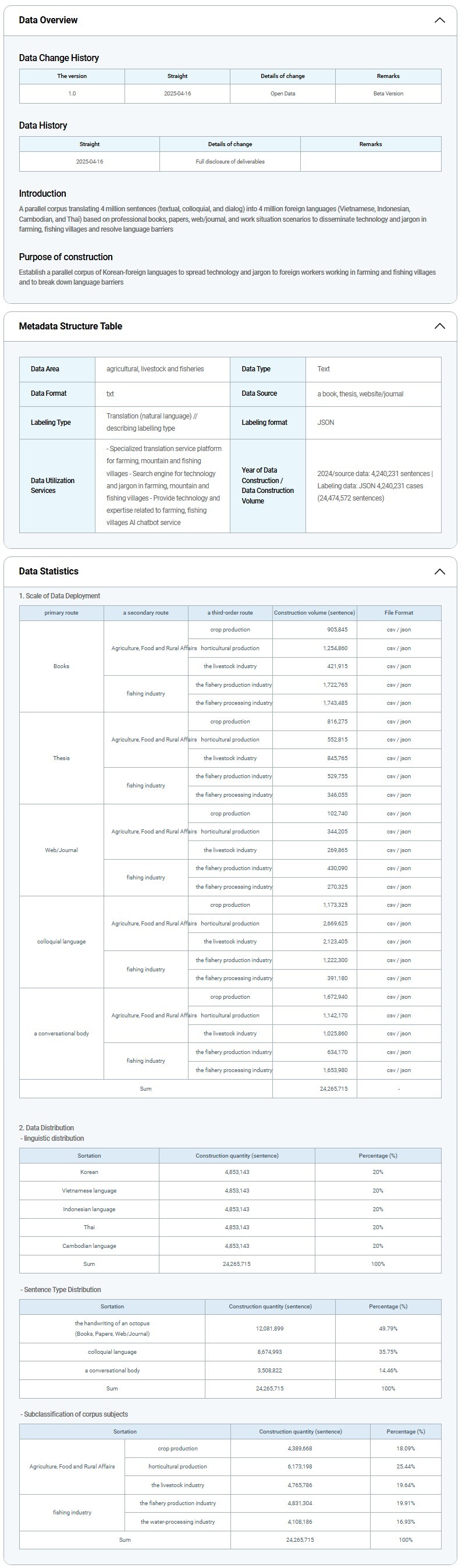 Korean-Foreign Language Parallel Corpus Data for Specialized Agricultural, Fisheries, and Rural Domains