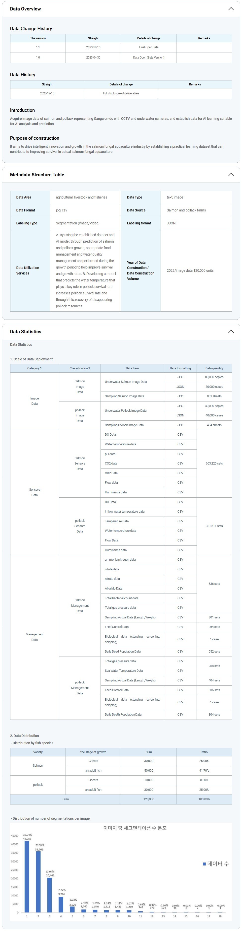 The comprehensive data on intelligent aquaculture for marine fish species in Gangwon Province (salmon, pollock)